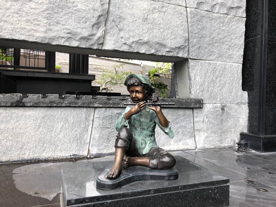 坐地吹笛小男孩