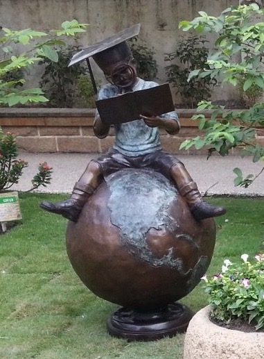 設計上以層層相疊的書堆,襯托少女年紀雖小,但追求學識的決心。隱喻藉由不斷的鑽研與學習,點滴積累而來的智慧,在來日將帶領著她達到巨人的高度。
