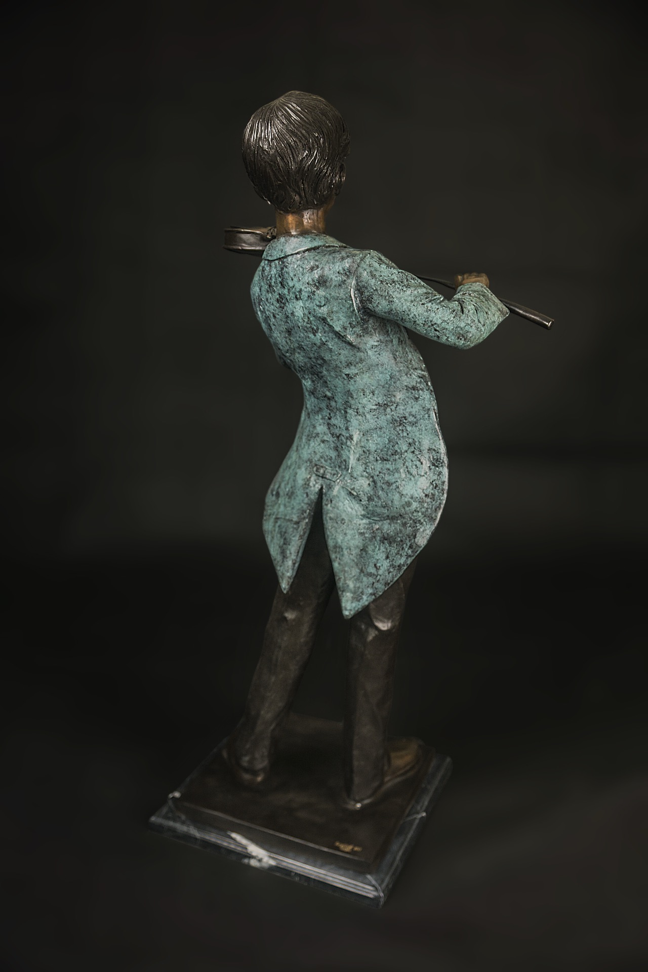 作品以演奏手高挑的身姿,精巧的套裝、自然揚起的外套與衣角。著重在各個部件的契合上,表現小小琴手演出時的自信與流暢。