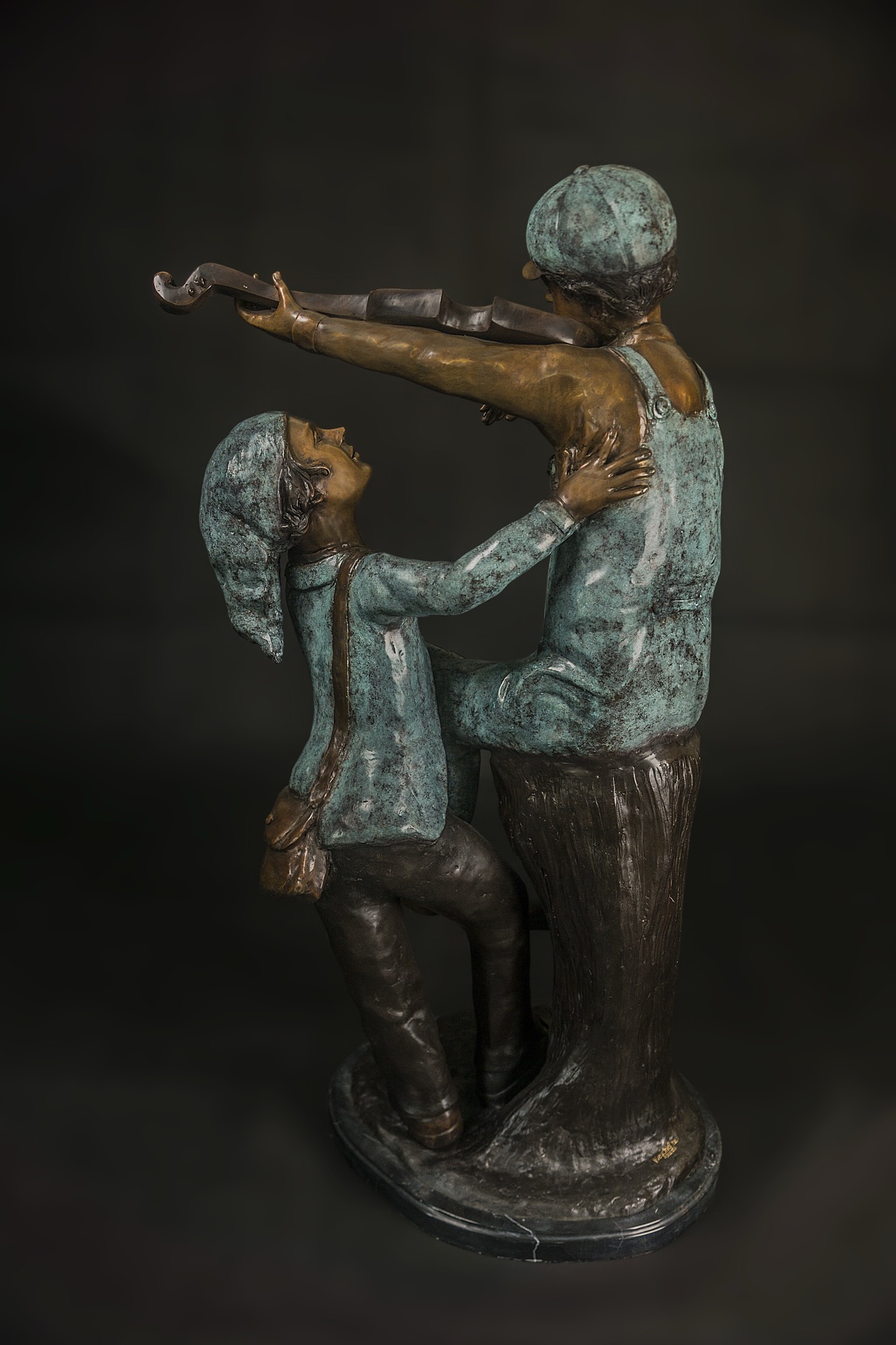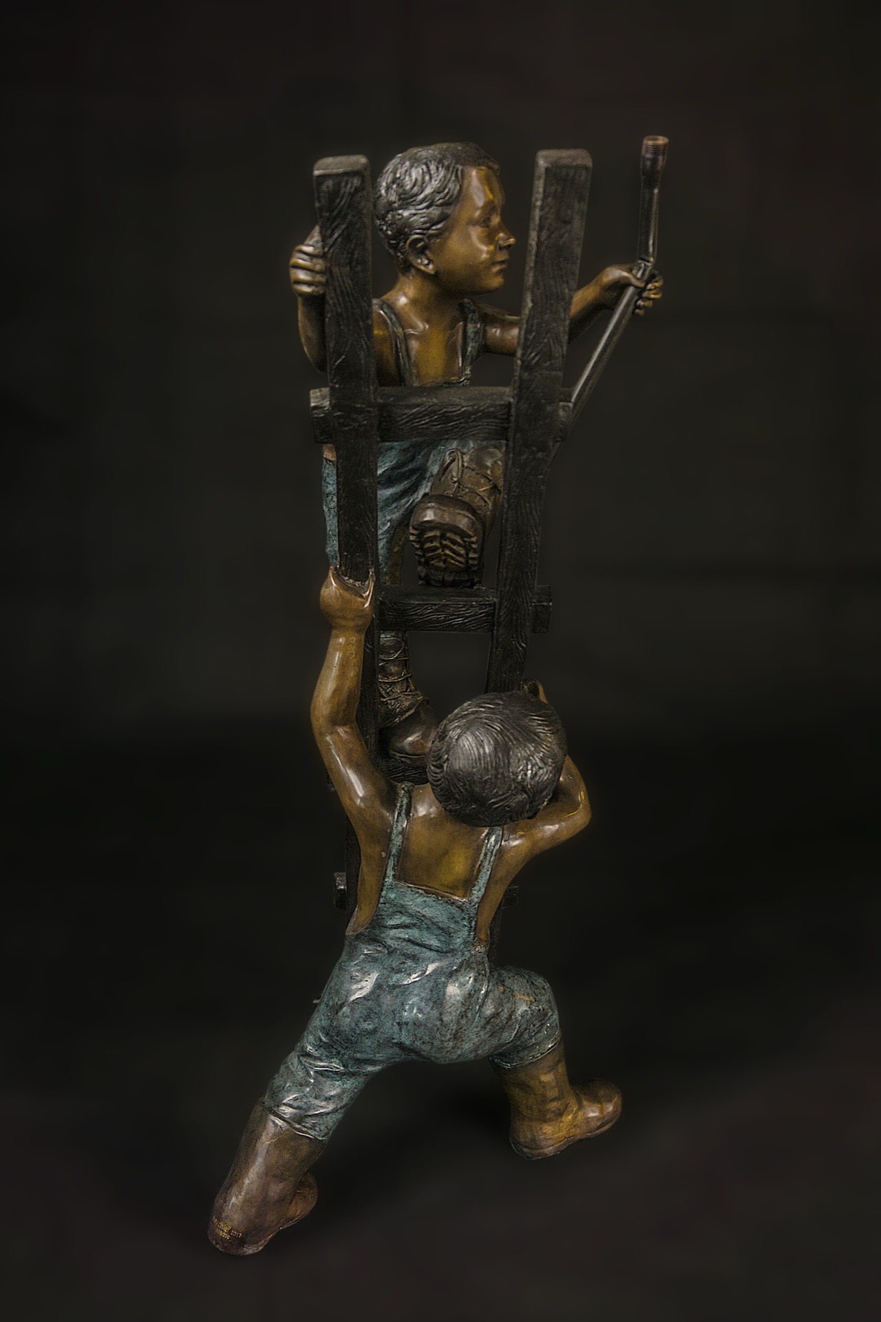 本作品藉由孩童爬梯、相扶相助的畫面,隱喻兄弟和睦相持、好友互信互助,人生的事業與成就,都能有若爬梯一般,步步高升。除放置室內空間,增加活潑生氣之外,更加強功能性的設計,在一端可接水管連結水源,一端可裝上灑水器,做庭院澆灌灑花的用途。是兼具觀賞與實用的生活藝術品。